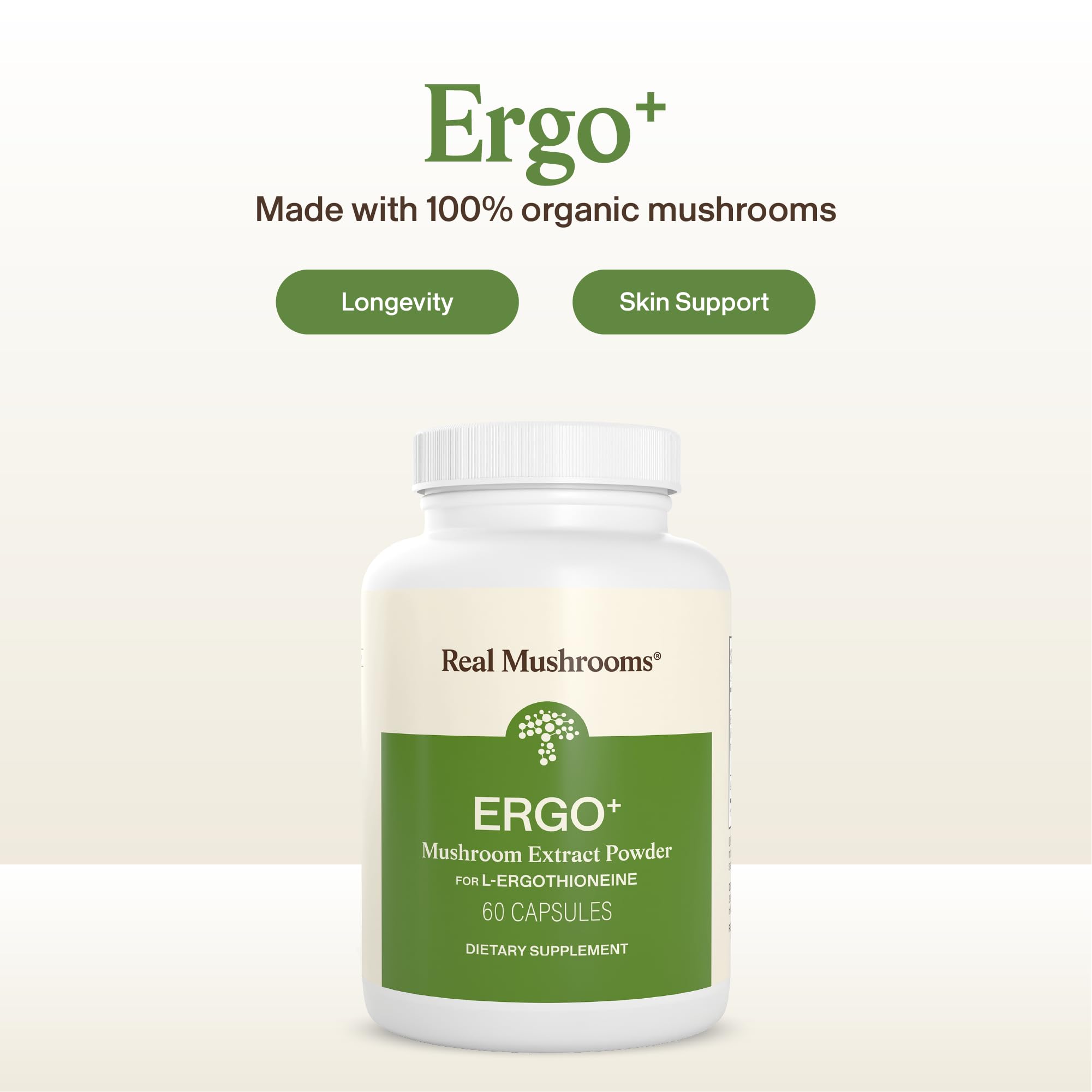 Real Mushrooms Ergothioneine Supplement – Golden Oyster Mushroom with Beta-Glucans – L-Ergothienine Extract Poweder – Organic, Vegan, Non-GMO, No Fillers – 60 Capsules Mushroom Supplement for Humans